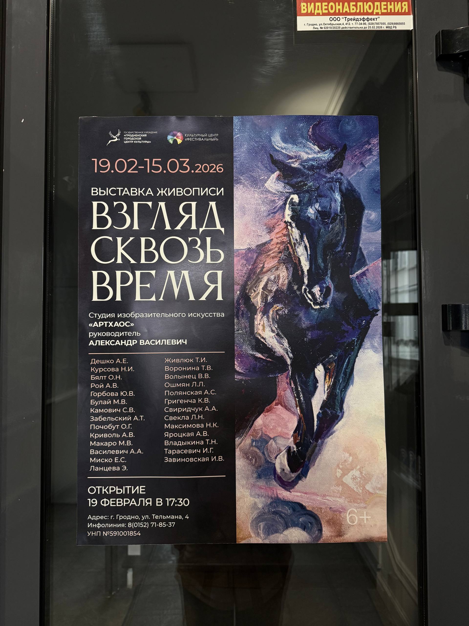 Выставка живописи «Взгляд сквозь время» участников студии изобразительного искусства «АРТХАОС» государственного учреждения образования «Гродненский областной центр технического творчества», открылась 19 февраля 2026года в культурном центре «Фестивальный».